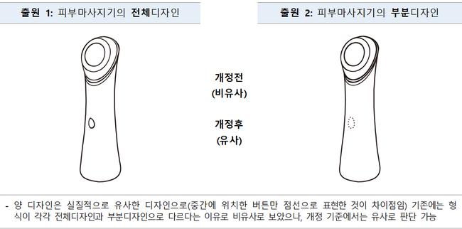 기존에는 동일하거나 유사한 디자인이라도 전체디자인과 부분디자인으로 각각 출원된 경우 비유사로 판단돼 중복 등록이 허용되기도 했다. 개정된 기준에 따라선 실질적으로 유사한 경우 형식과 무관하게 유사로 간주되어 이중 등록을 방지할 수 있게 됐다.