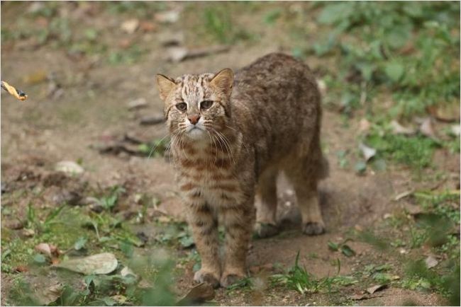 고양잇과에 속하지만, 일반 고양이와는 전혀 다른 종으로 귀 뒤편의 흰 반점, 굵은 꼬리, 얼굴 줄무늬 등으로 구별할 수 있다.