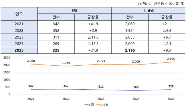 2025년 상반기 세계무역기구(WTO) 회원국이 통보한 기술규제(TBT)가 2,195건으로 집계돼 역대 최고치를 기록한 가운데, 미국·중국·유럽연합 등 주요 수출시장의 규제가 전년 대비 16.2% 증가한 것으로 나타났다.