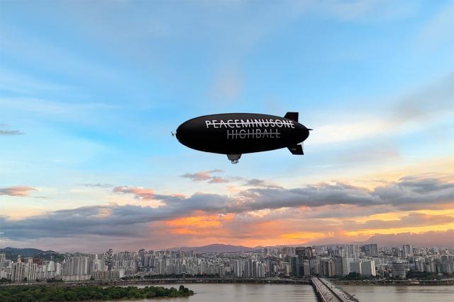 이날 여의도를 비행한 ‘피스마이너스원’ 비행선은 첫 번째 제품인 블랙 하이볼 디자인으로 여의도를 지나는 시민들의 시선을 집중시켰다.