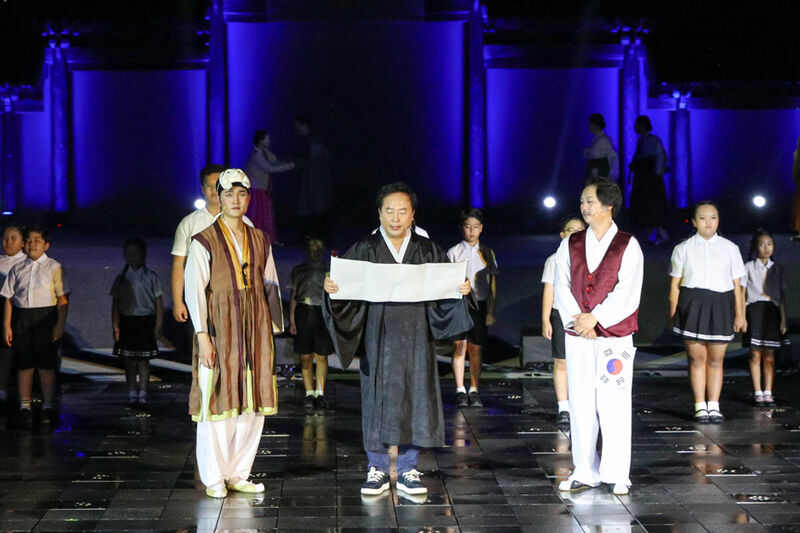 권기창 시장은 이날 공연에서 독립운동가 역할로 무대에 올라 독립선언문을 낭독하고 “대한독립 만세”를 힘차게 외치며, 조국 광복을 위해 목숨을 바친 선열들의 숭고한 정신을 되새겼다. 관객들은 시장과 배우들이 함께한 만세삼창에 큰 박수와 환호로 화답하며 공연의 감동을 함께했다.
