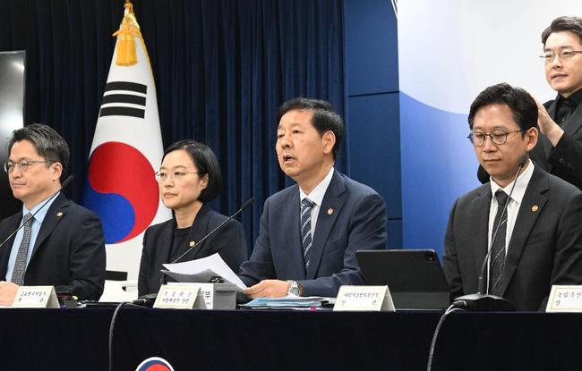 구윤철 부총리 겸 기획재정부 장관이 8월 22일 오후 서울 종로구 정부서울청사에서 열린 `새정부 경제성장전략 관계부처 합동브리핑`에 참석, 발표문을 낭독하고 있다. 사진 왼쪽부터 문신학 산업부 1차관, 한성숙 중기부 장관, 구윤철 부총리, 배경훈 과기부 장관