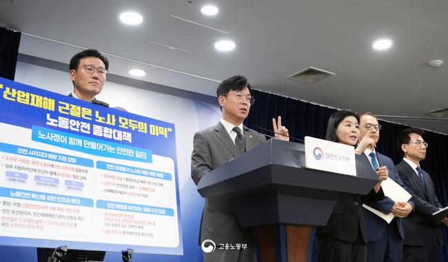 김영훈 고용노동부 장관이 9월 15일 사고 없는 일터, 안전 대한민국을 위한 `노동안전 종합대책`을 발표하고 있다.