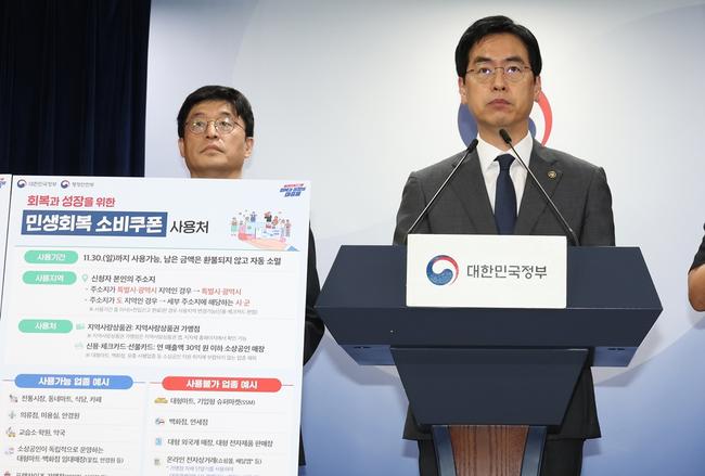 김민재 행정안전부 차관이 12일 오전 서울시 종로구 정부서울청사 브리핑실에서 `민생회복 소비쿠폰 2차 지급계획`을 발표하고 있다.