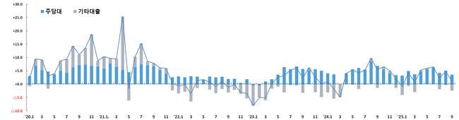 17일 금융위원회와 금융감독원에 따르면 2025년 9월 중 전 금융권 가계대출은 1조1천억 원 늘어 전월(4조7천억 원)과 전년 동월(5조4천억 원)에 비해 증가폭이 대폭 축소됐다.