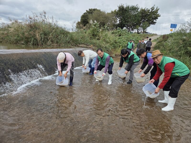 이날 방류된 어린 고기는 ◇동자개 1만마리,◇미꾸리 3만마리,◇붕어 1만마리 총 5만마리로.지역 토속어류의 번식 기반을 마련하고 생물 다양성 회복에 기여할 것으로 기대된다.