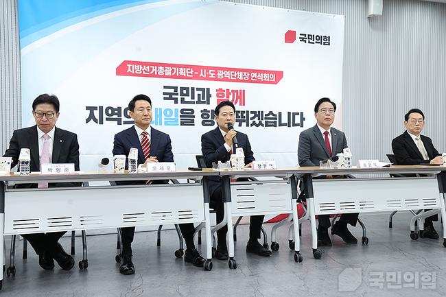 장동혁, 시·도지사와 연석회의…“내년 지방선거 승리로 국정심판” - “대장동 게이트, 1심 판결이 ‘이재명 게이트’로 못 박았다…검찰 항소 포기 규탄” - 송언석 “물가·환율·부동산 민생위기…지방선거서 정권 폭정 심판” - 나경원 “‘국잘싸, 일잘싸’ 시스템 공천…저비용·고효율 홍보로 필승”