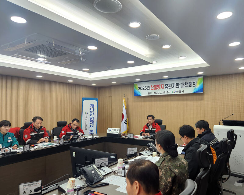 2월 26일(수)에는 안동시 재난안전상황실에서 소방서, 경찰서, 군 등 7개 유관기관과 문화유산과, 노인장애인과 등 안동시 6개 협업부서가 모인 가운데 ‘산불방지 역량 강화 및 산불재난 공조체제 유지’를 위한 대책회의를 열고, 산불방지 종합대책 공유 및 협조사항에 대한 의견 교환을 진행했다.