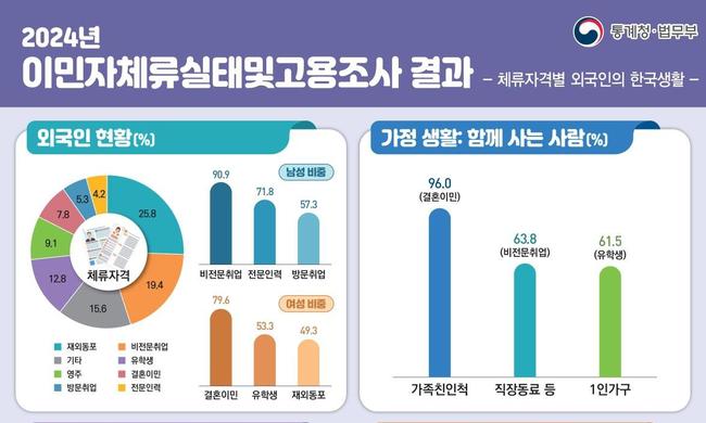 통계청과 법무부는 국내 체류 외국인의 고용 및 생활 실태를 분석한 2024년 이민자체류실태및고용조사 결과를 18일 발표했다.